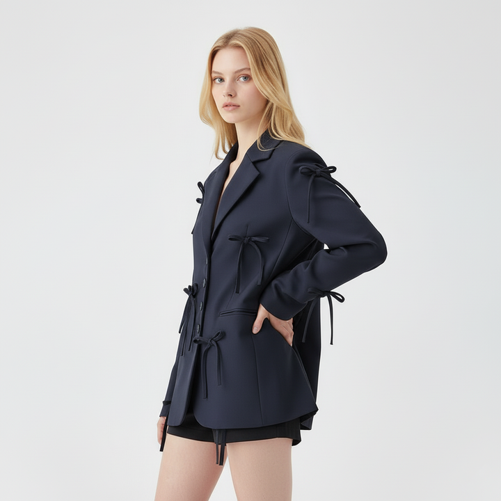 - Charming Decorative Bows – Playful bow accents on the sleeves add a unique and feminine twist to the timeless blazer silhouette.
